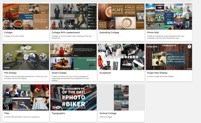 On the templates page, select the type of visual you'd like to create. In this case, we clicked Live Displays > Collage.